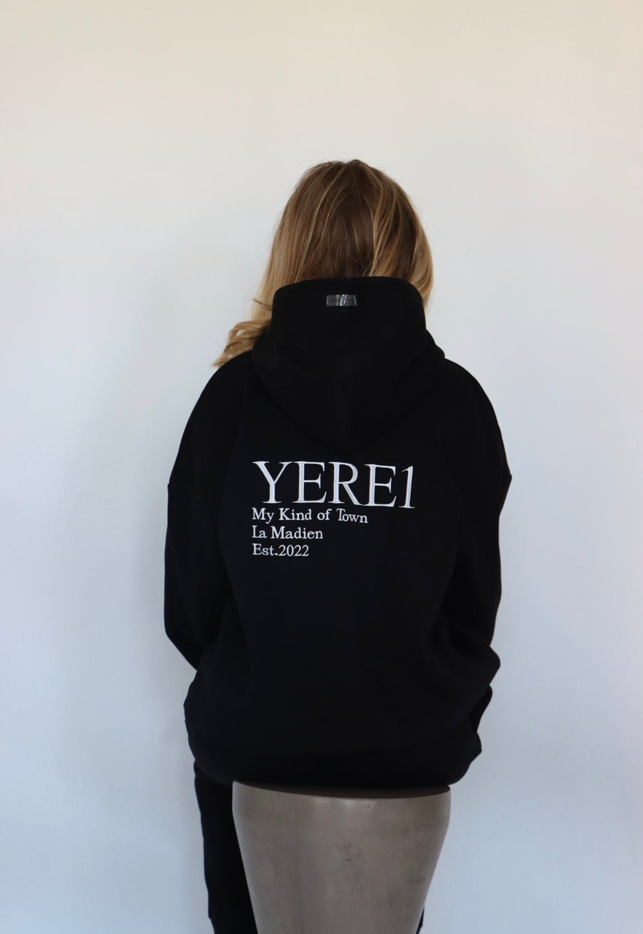 Signature styled, πππππ‘ππ ππππ‘πππ, embroideredΒ YERE1 Hoodies for women.